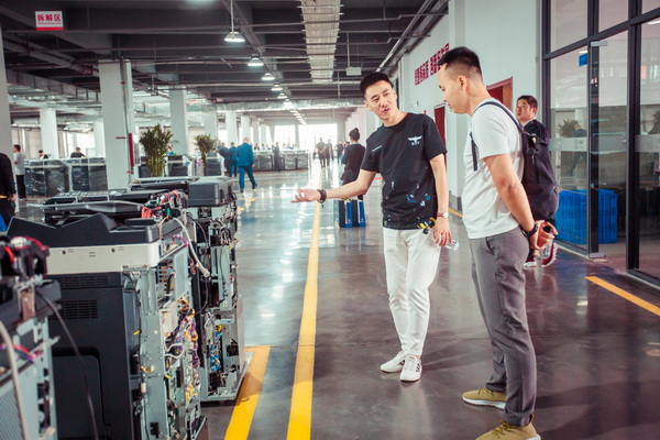 大家一起实地参观了蓝颜工厂,了解了工厂的生产流程、质量标准、产品储备以及服务项目,各合作伙伴对蓝颜公司生产的再制造复印机的品质一致给予了高度认可。